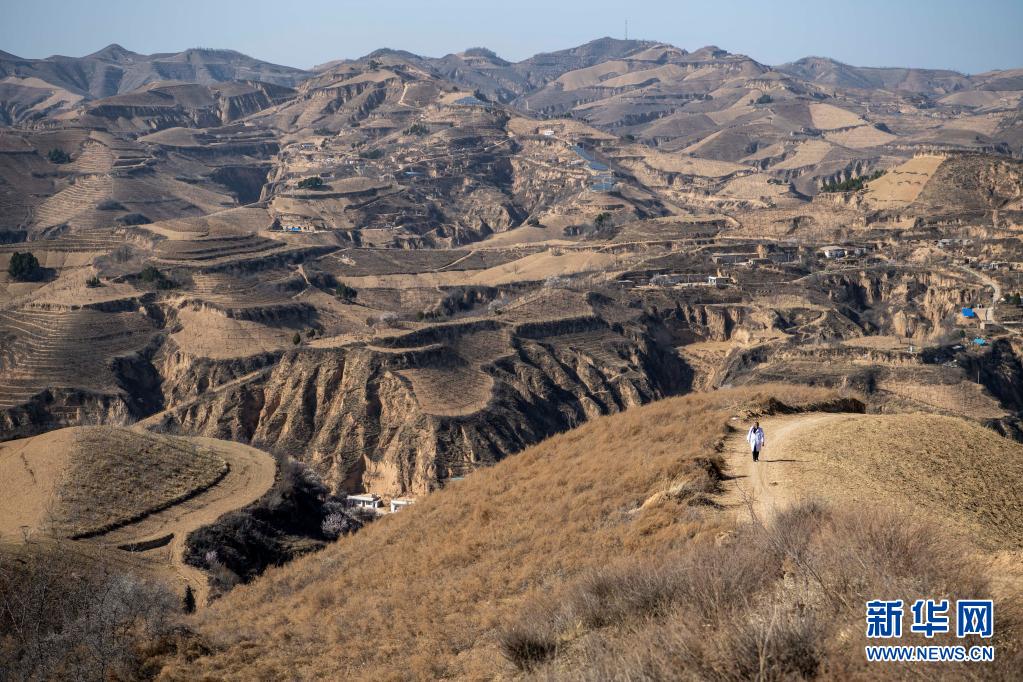 張尚保走在去鐵頭村張家灣自然村出診的路上(3月23日攝)。新華社記者 楊晨光 攝