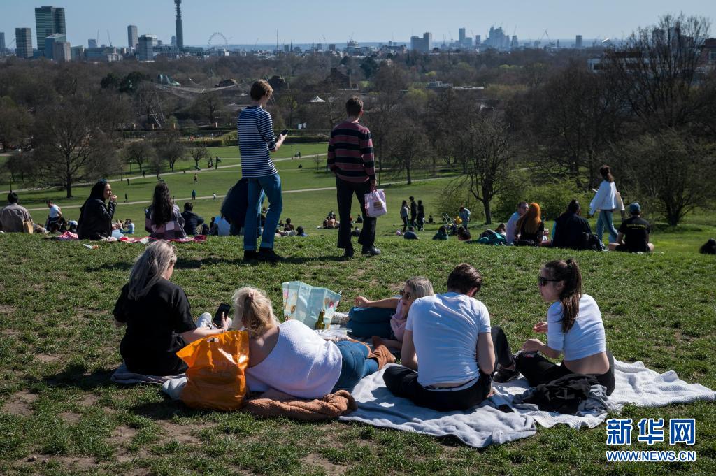 3月29日,人們在英國倫敦的報(bào)春花山享受陽光。