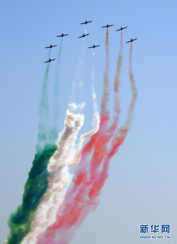當日,意大利“三色箭”飛行表演隊在意大利首都羅馬舉行飛行表演,慶祝意大利空軍建立98周年。