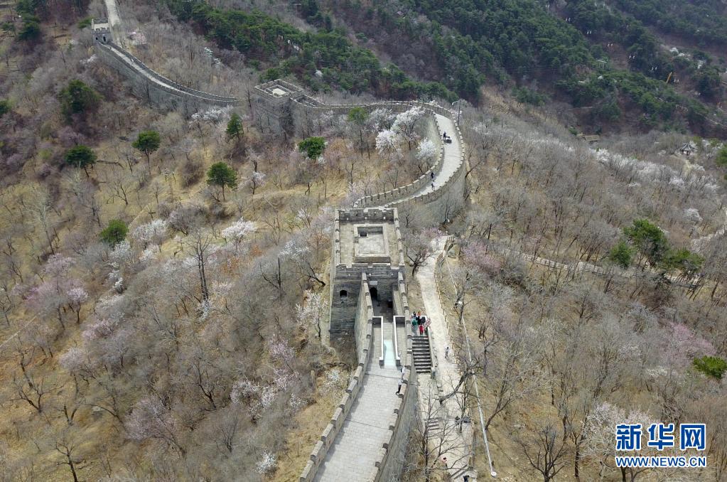 近日,隨著氣溫逐步回升,北京慕田峪長城山花爛漫,春意漸濃。