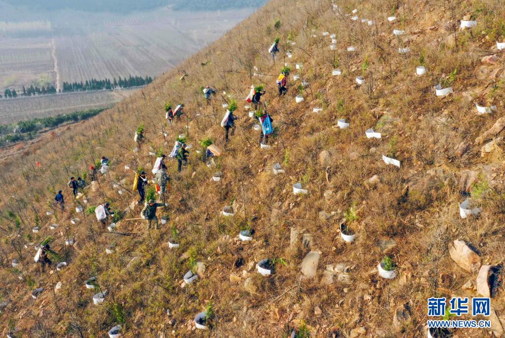 仲春時節(jié),河北省遵化市提前開始今年的荒山造林,造林隊員們忙著運送樹苗、栽樹、澆水。遵化市今年計劃完成荒山造林5萬多畝。
