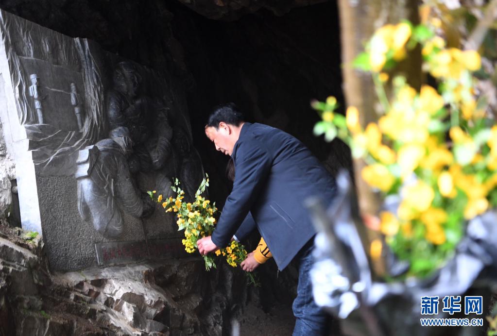 4月2日,曾祥有在金剛臺紅軍洞里獻花祭奠。
