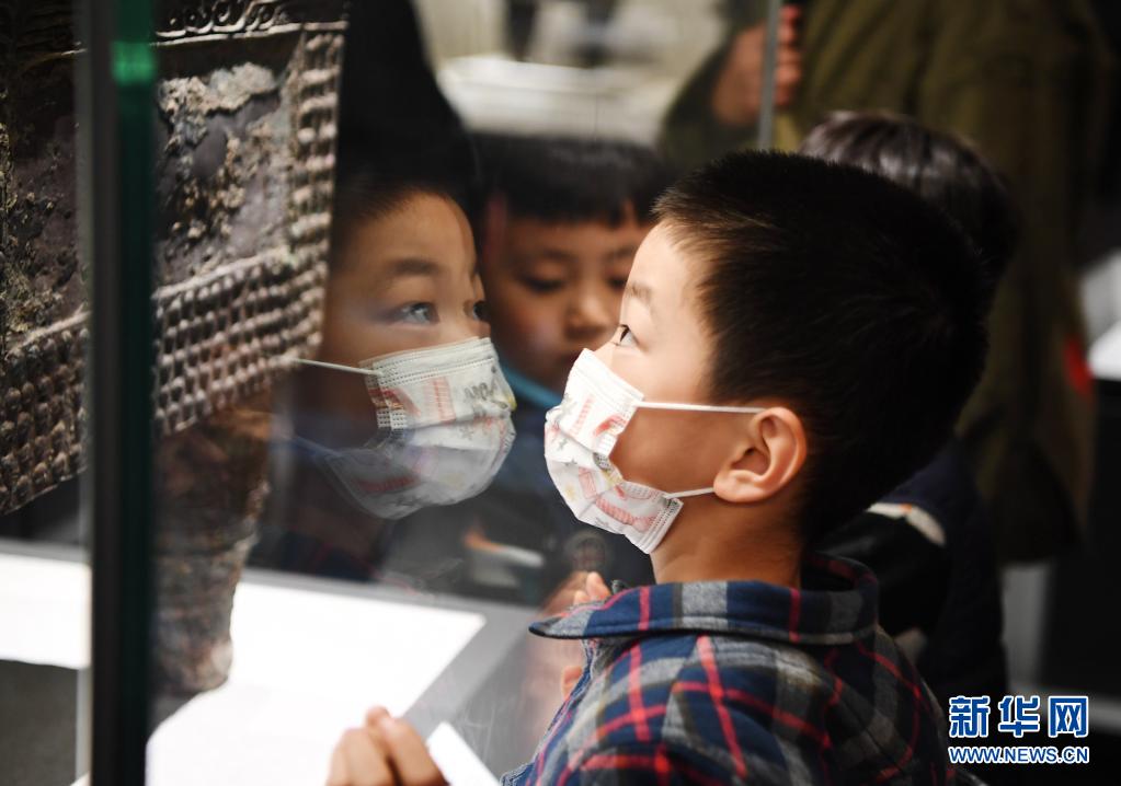 4月5日,一名小朋友在河南博物院參觀。