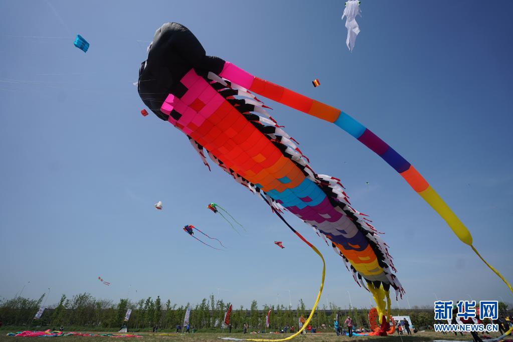 4月10日,人們在第二屆金陵風箏會上放風箏。當日,第二屆金陵風箏會在江蘇省南京市浦口區永寧街道舉行。人們放飛風箏,歡度快樂時光。新華社記者 季春鵬 攝
