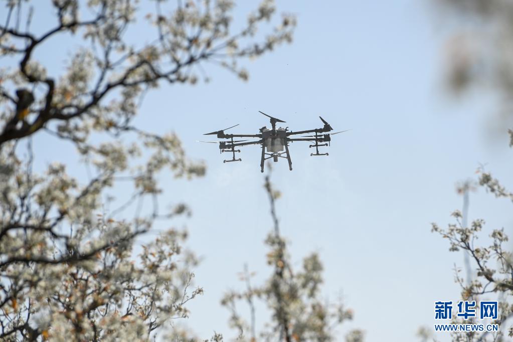新華全媒+丨新疆:梨農授粉用上無人機