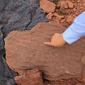 這是波痕沉積結構化石和晚白堊世恐龍同時期的底棲生物潛穴化石(4月6日攝)。