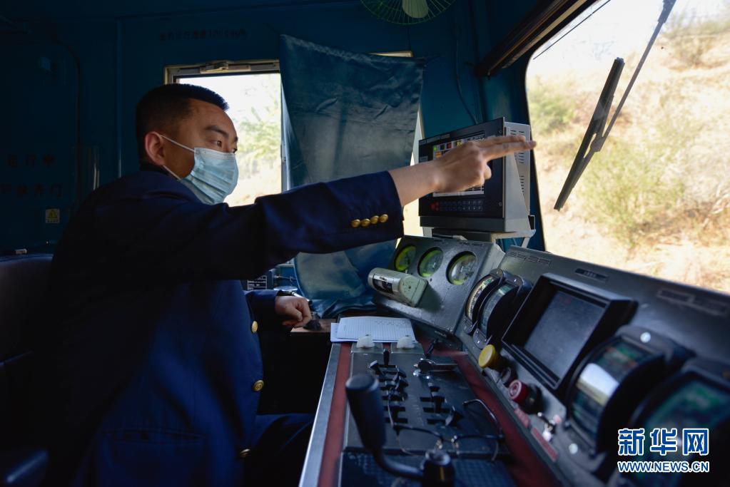 中國鐵路成都局集團公司成都客運段5633/5634次列車駕駛員趙瑋在發車前確認信號(4月11日攝)。新華社記者 胥冰潔 攝