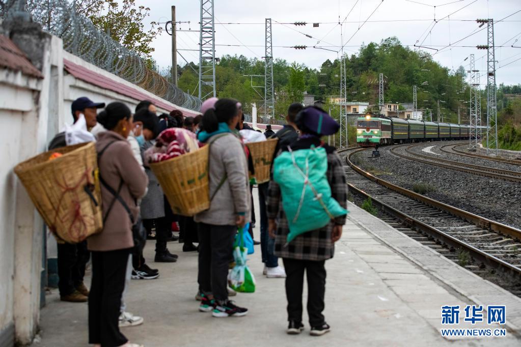 在成昆鐵路上普雄站,人們準(zhǔn)備乘坐5633次列車出行(4月11日攝)。新華社記者 沈伯韓 攝