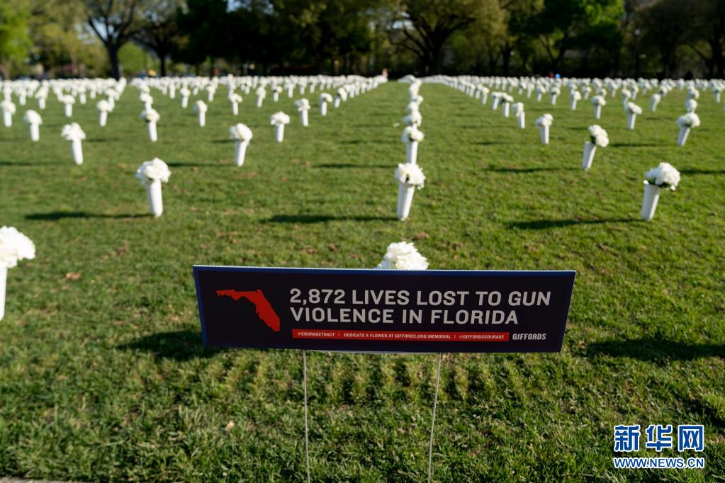當日,四萬朵白色絹花被擺放在國會大廈與華盛頓紀念碑之間的國家廣場草坪上,以紀念在全美槍擊事件中喪生的人們。據美國媒體報道,2020年美國造成四人及以上傷亡的嚴重槍擊案數量創下歷史新高,較2019年激增47%。同時,美國槍支銷售數量也突破歷史紀錄,民眾對公共安全擔憂加劇。