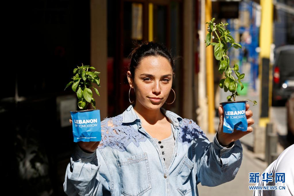當日是“世界地球日”,“明日黎巴嫩”協會在貝魯特向人們分發秧苗,提醒人們保護環境。