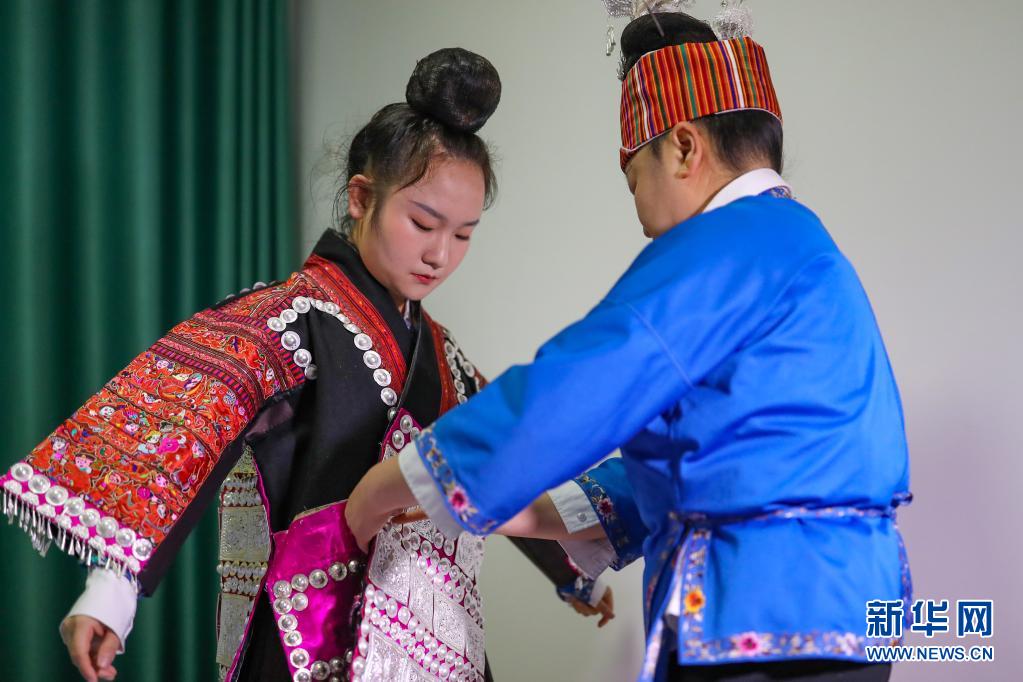 今年姊妹節(jié)前夕,母親張?jiān)雅畠菏⒀b的銀飾拿到銀飾店里進(jìn)行清洗,希望女兒能在盛裝巡演上展示最美的一面。4月25日姊妹節(jié)當(dāng)天,張佳麗早早起床,在母親和同學(xué)的幫助下,開始化妝、穿衣、佩戴銀飾,一直忙到9點(diǎn)才準(zhǔn)備完畢。身著盛裝站在巡演隊(duì)伍中,張佳麗說:“這是我們苗族同胞最大的節(jié)日,無論身處何地,我都會(huì)如約回家參加活動(dòng)!”