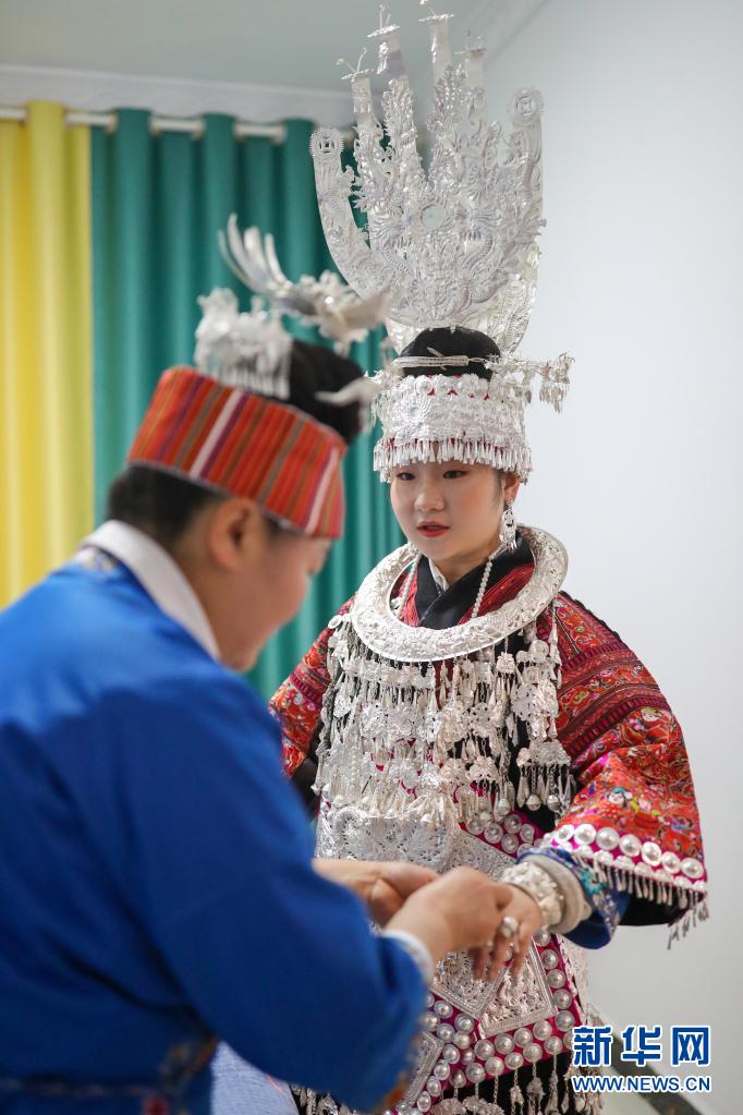 今年姊妹節(jié)前夕,母親張?jiān)雅畠菏⒀b的銀飾拿到銀飾店里進(jìn)行清洗,希望女兒能在盛裝巡演上展示最美的一面。4月25日姊妹節(jié)當(dāng)天,張佳麗早早起床,在母親和同學(xué)的幫助下,開始化妝、穿衣、佩戴銀飾,一直忙到9點(diǎn)才準(zhǔn)備完畢。身著盛裝站在巡演隊(duì)伍中,張佳麗說:“這是我們苗族同胞最大的節(jié)日,無論身處何地,我都會(huì)如約回家參加活動(dòng)!”