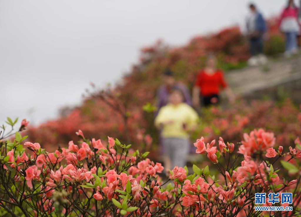 4月26日,游人在貴州省黔東南苗族侗族自治州丹寨縣龍泉山景區賞花。近日,各地鮮花盛開,吸引人們走出家門踏青賞花。新華社發(楊武魁 攝)