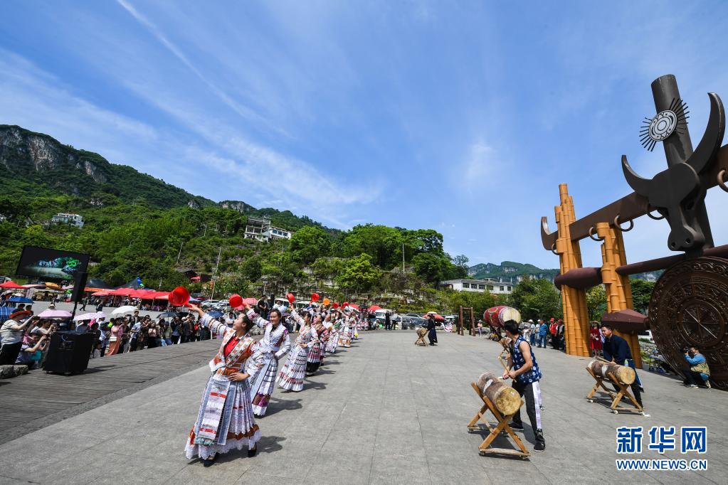 5月1日,在貴州省畢節市黔西縣新仁苗族鄉化屋景區文化廣場上,苗族同胞載歌載舞歡度“五一”。