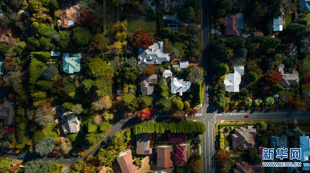 這是5月3日在澳大利亞悉尼西部藍山地區(qū)拍攝的多彩的街道(無人機拍攝)。