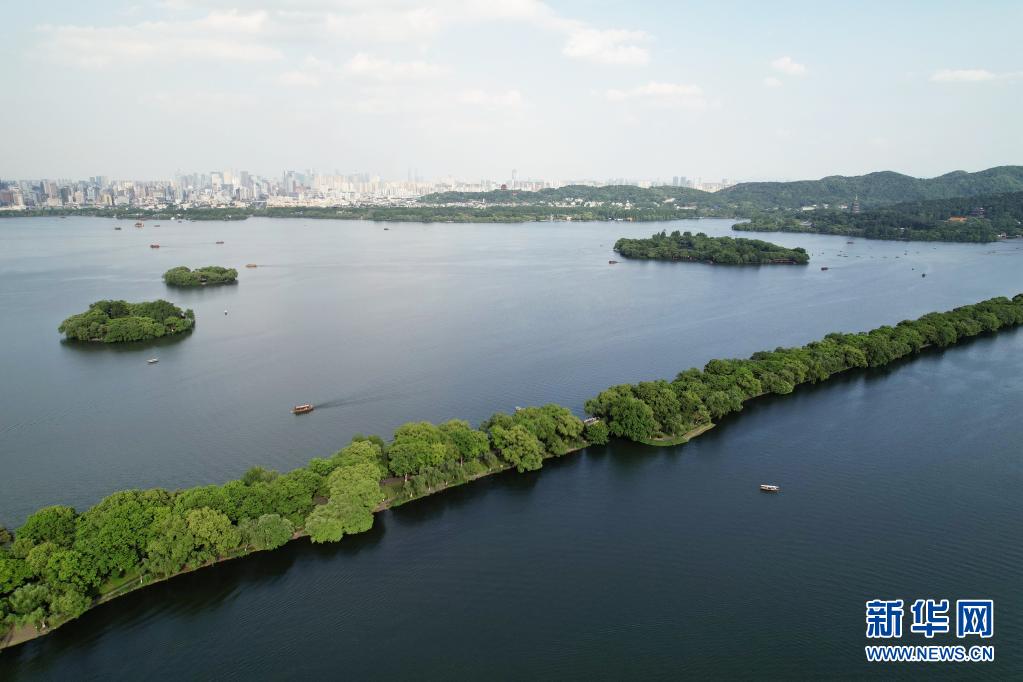 初夏時節,杭州西湖綠意蔥蘢,引人入勝。
