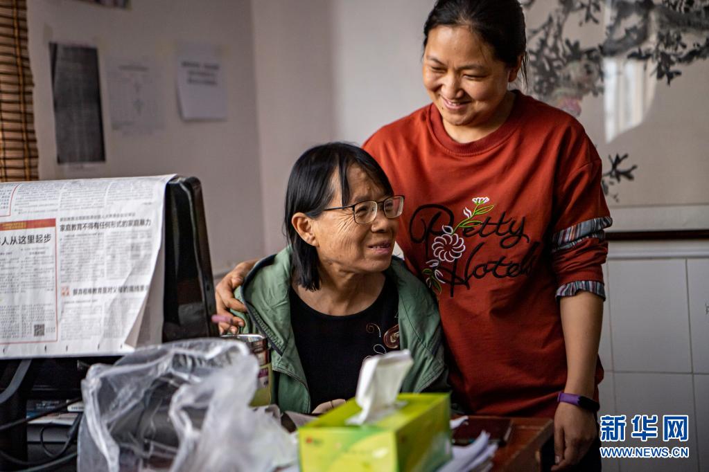 在華坪兒童福利院長大的雷秋鳳(右)來探望張桂梅(3月25日攝)。新華社記者 江文耀 攝