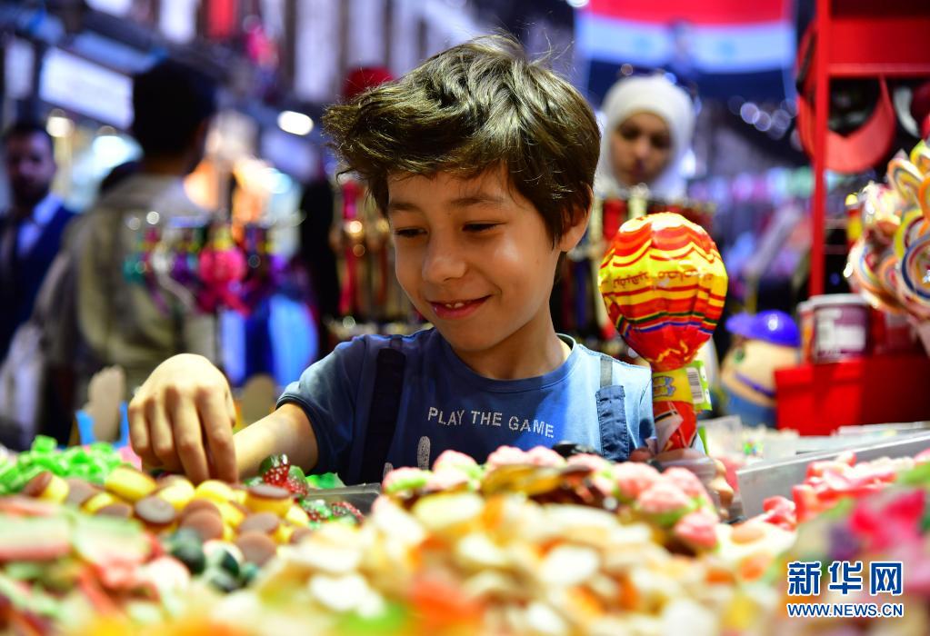 5月11日,一名兒童在敘利亞首都大馬士革的市場上挑選糖果。