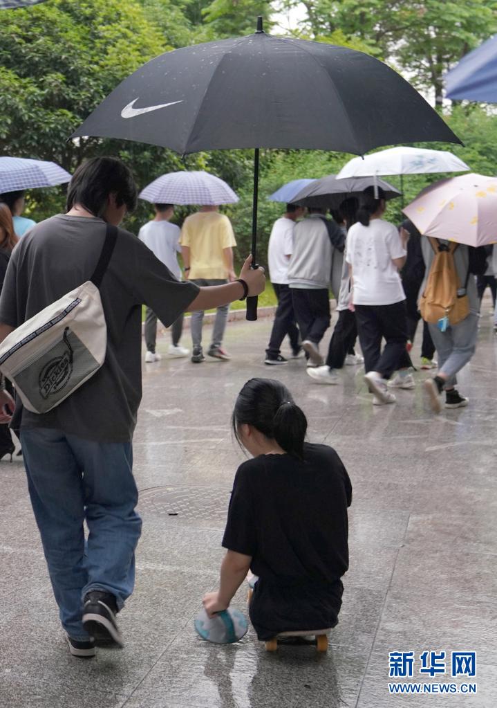 2021年5月10日,蔣張子怡在雨天行動不便,同學撐傘替她擋雨。