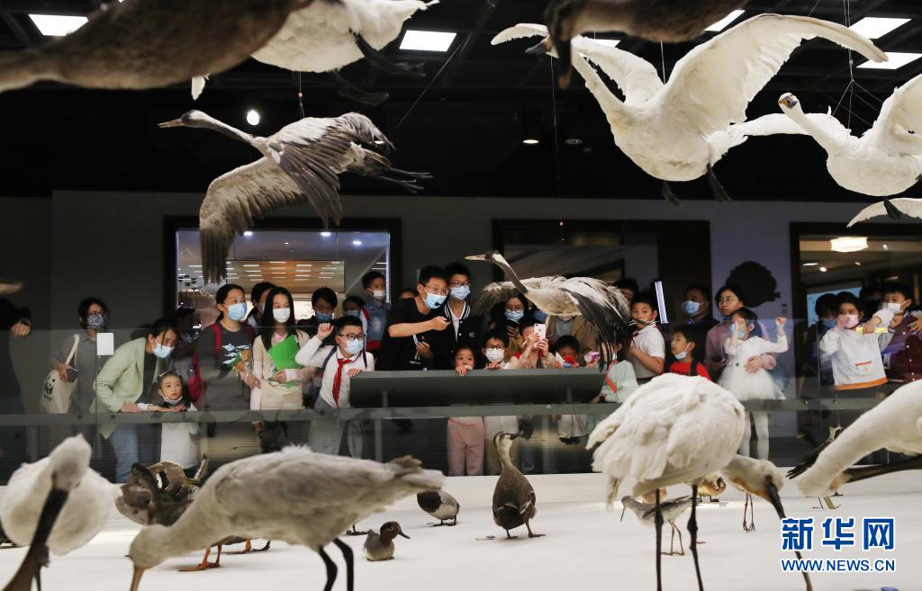 當日是國際博物館日,“當好奇心遇到標本”——2021上海自然博物館之夜系列活動正式拉開序幕,前來參觀的市民通過多種形式參與到科普嘉年華活動中。在接下來的三個月時間里,上海自然博物館還將舉辦3場公益博物館奇妙夜活動,讓更多人走進博物館,了解自然與科技。新華社記者 方喆 攝