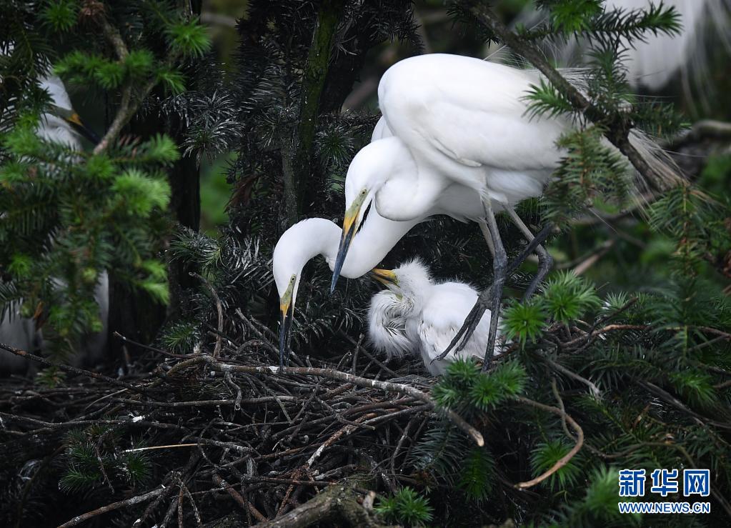 在南昌市新建區(qū)象山森林公園內(nèi),白鷺和雛鳥們在一起(5月18日攝)。