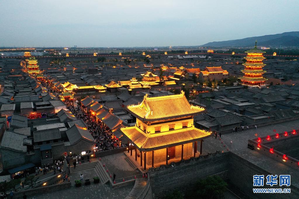 夜幕降臨,位于山西省太原市晉源區(qū)的太原古縣城流光溢彩,游人如織。太原古縣城始建于明代,占地面積約0.8平方公里,因其造型像一只飛鳥,也被譽(yù)為“鳳凰城”。歷經(jīng)8年修繕后,太原古縣城于2021年5月重新對外開放。