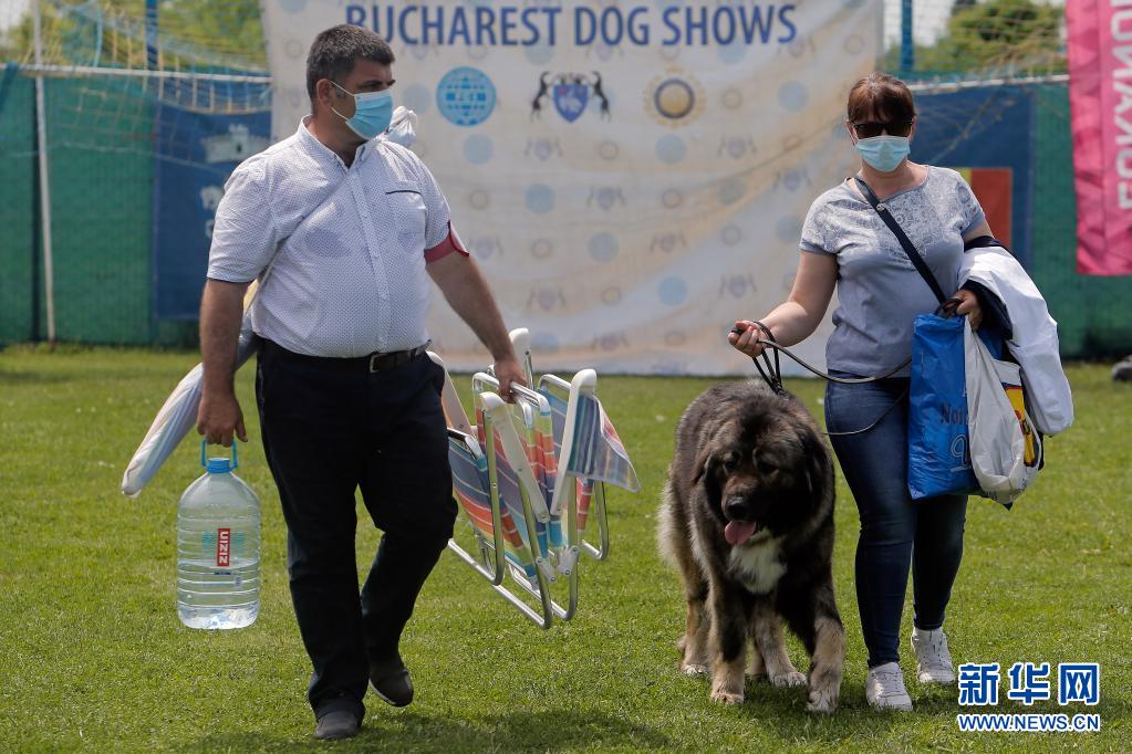 5月23日,一只寵物犬在羅馬尼亞首都布加勒斯特參加選美比賽后隨主人離開。新華社發(克里斯泰爾攝)