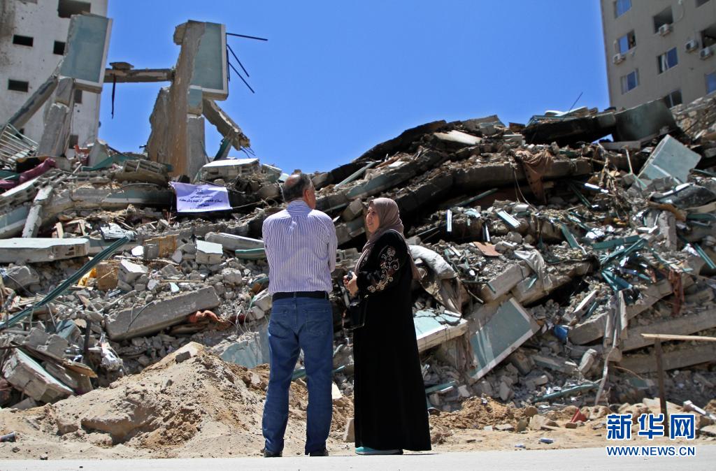 5月23日,巴勒斯坦人在加沙城望著遭以軍空襲損毀的賈拉塔。5月10日以來,以色列與加沙地帶武裝組織之間爆發(fā)嚴重沖突。20日晚,哈馬斯與以色列方面各自宣布,雙方已達成停火協(xié)議,停火從21日凌晨開始。新華社發(fā)(里澤克·阿卜杜勒·賈瓦德攝)