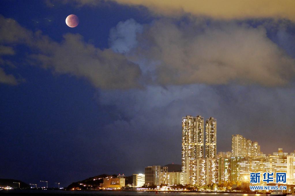 當日,本年度“最大最圓月(也稱‘超級月亮’)”與月全食(也稱“紅月亮”)浪漫“邂逅”。
