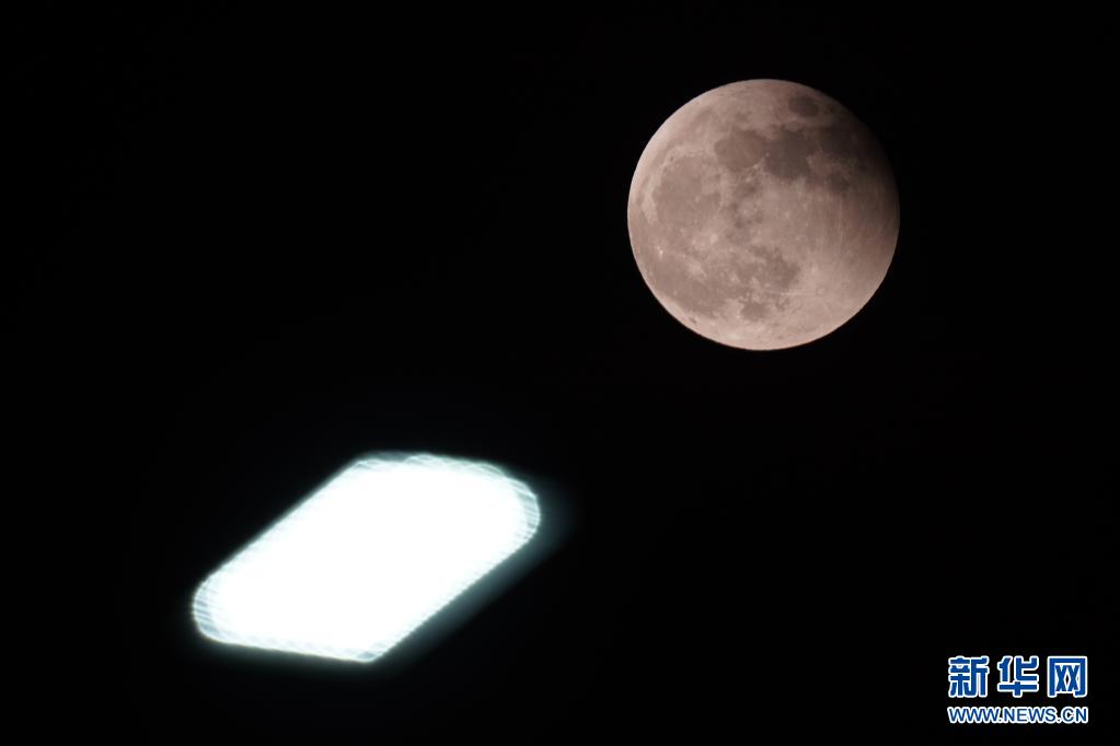 當日,本年度“最大最圓月(也稱‘超級月亮’)”與月全食(也稱“紅月亮”)浪漫“邂逅”。