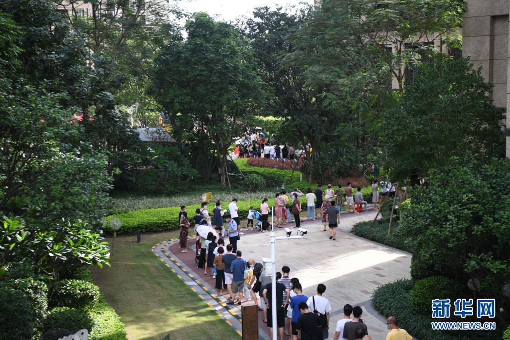 5月27日,在廣州荔灣區白鶴洞街道一小區內,居民排隊進行核酸檢測。新華社記者 鄧華 攝