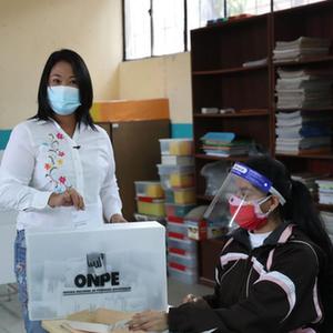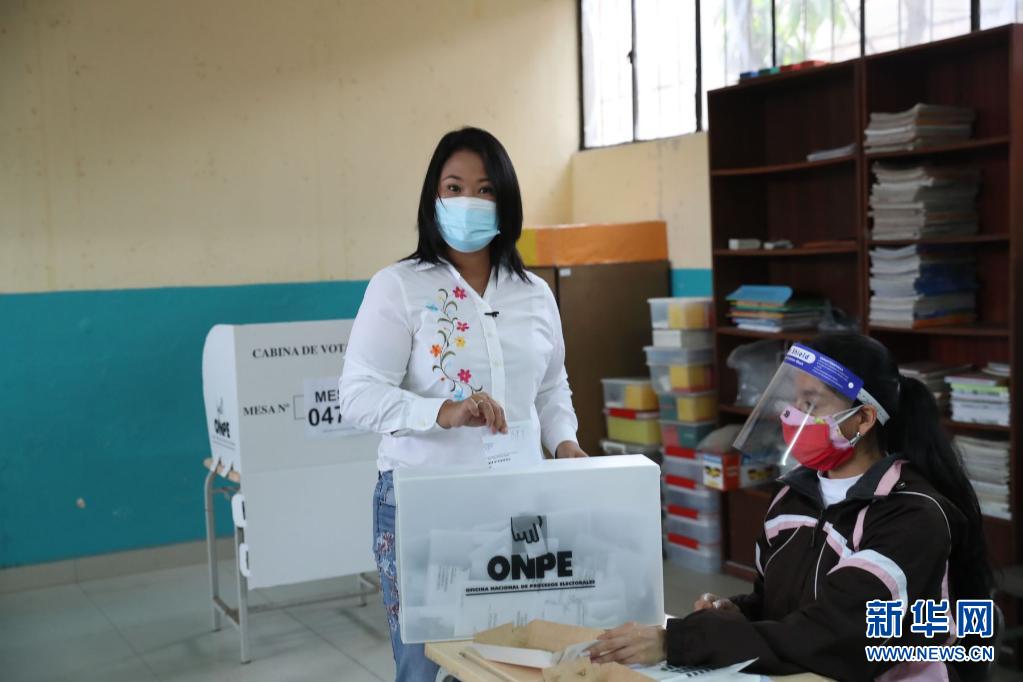 6月6日,人民力量黨候選人藤森慶子在秘魯首都利馬一處投票站投票。