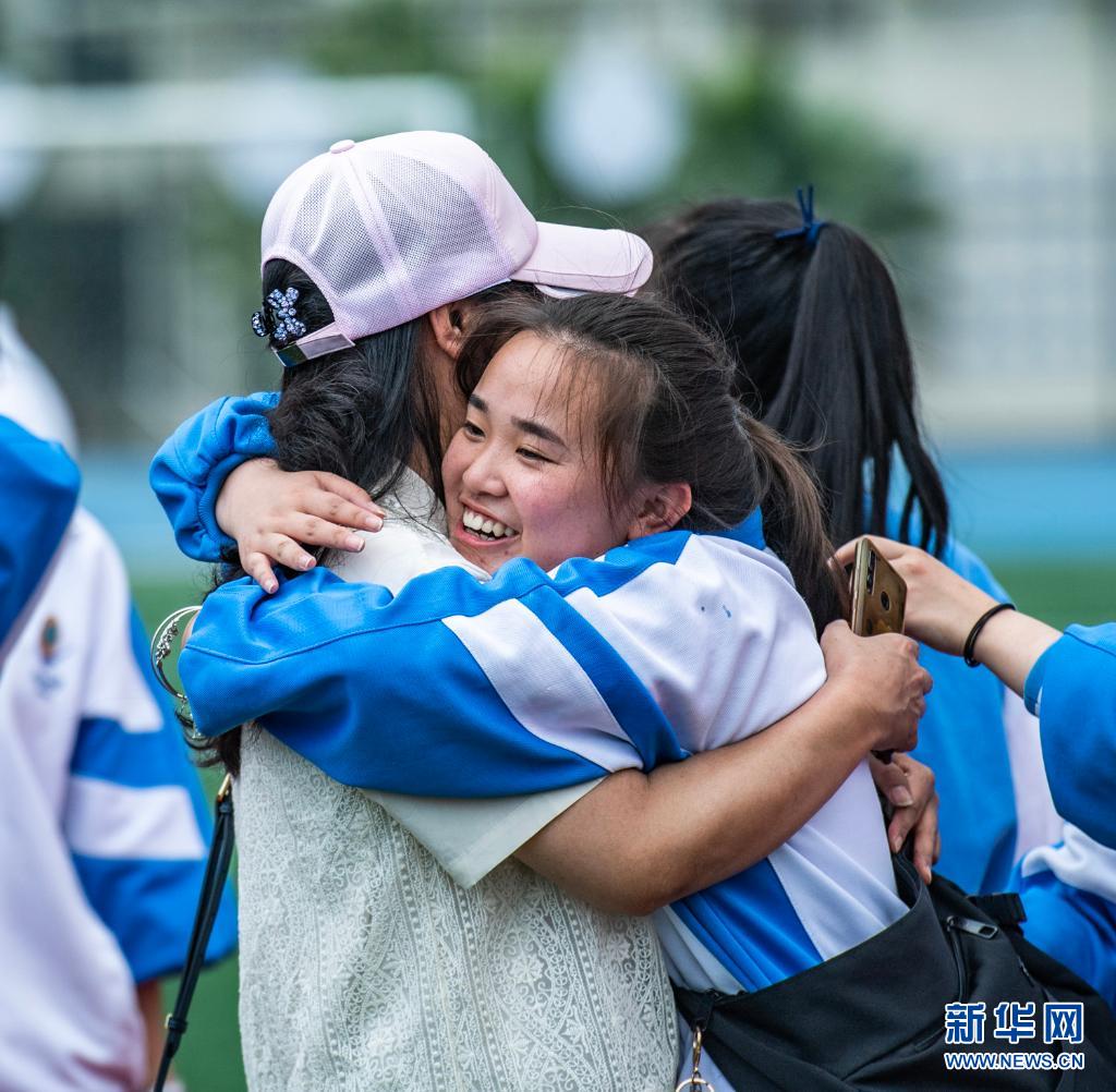 6月9日,烏當(dāng)中學(xué)高三學(xué)生和老師擁抱。
