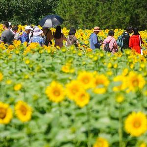 日前,北京奧林匹克森林公園北園的向日葵進入盛花期,眾多市民和游客前來觀賞。