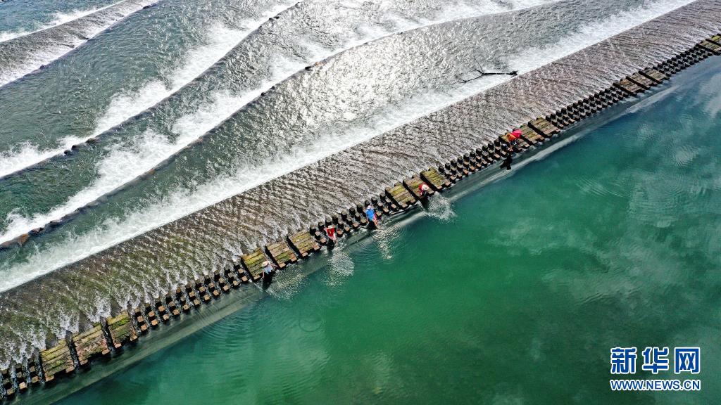 7月6日,市民在浙江省臺州市仙居縣永安溪白塔鎮段游玩(無人機照片)。