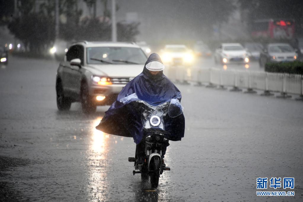 7月12日, 在北京市海淀區北三環西路,市民在雨中騎行。