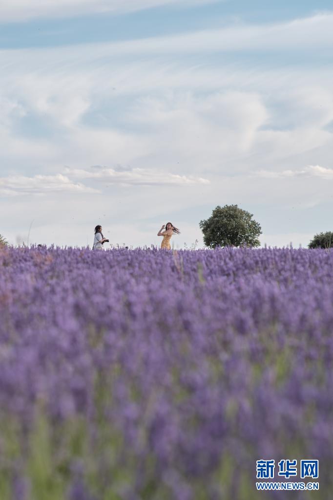 7月13日,人們在西班牙卡斯蒂利亞-拉曼查自治區(qū)布里韋加的薰衣草田游玩。