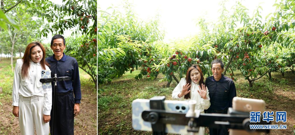 拼版照片:左圖為常阿娟和父親常乃民在山西省長治市潞州區東旺村果園里;右圖為常阿娟和父親常乃民通過網絡直播介紹自家種的水果(7月7日攝)。今年28歲的常阿娟原來在一家會計師事務所工作,2019年返鄉和父母一起打理果園。近兩年,常阿娟抓住網絡直播的熱潮,把鏡頭聚焦田間地頭,澆水、施肥、剪枝現場都成了她的“直播間”。借助網絡的力量,常阿娟家的產品不愁銷路,找她代售農產品的村民也越來越多。