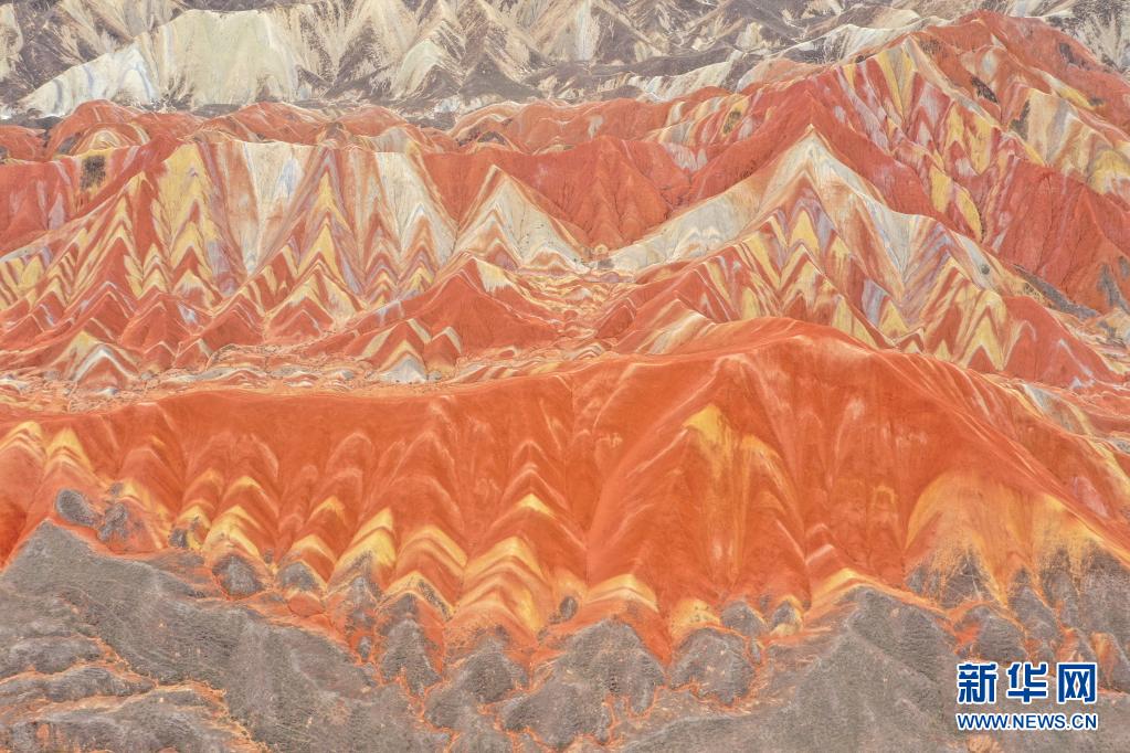 夏日時節,位于甘肅省張掖市的張掖世界地質公園內,絢麗的天然色調依山勢起伏,層理交錯分布,行走其中仿佛置身畫境。