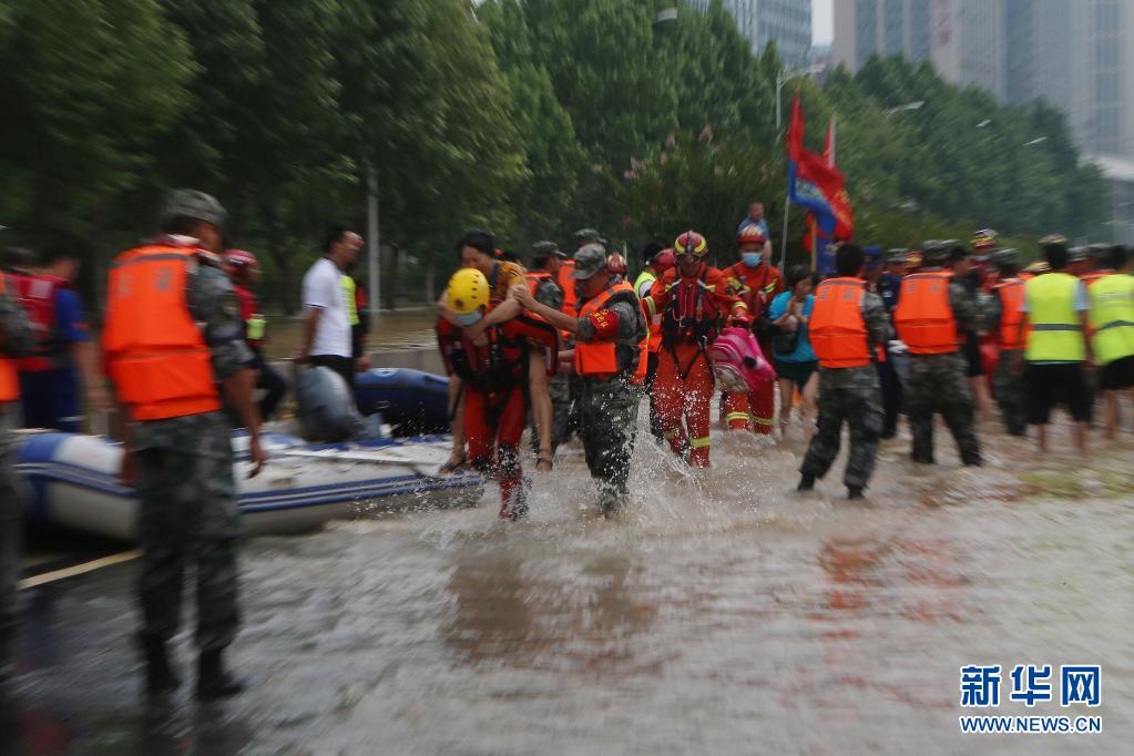 7月22日,在阜外華中心血管病醫院附近,救援人員轉移人員。