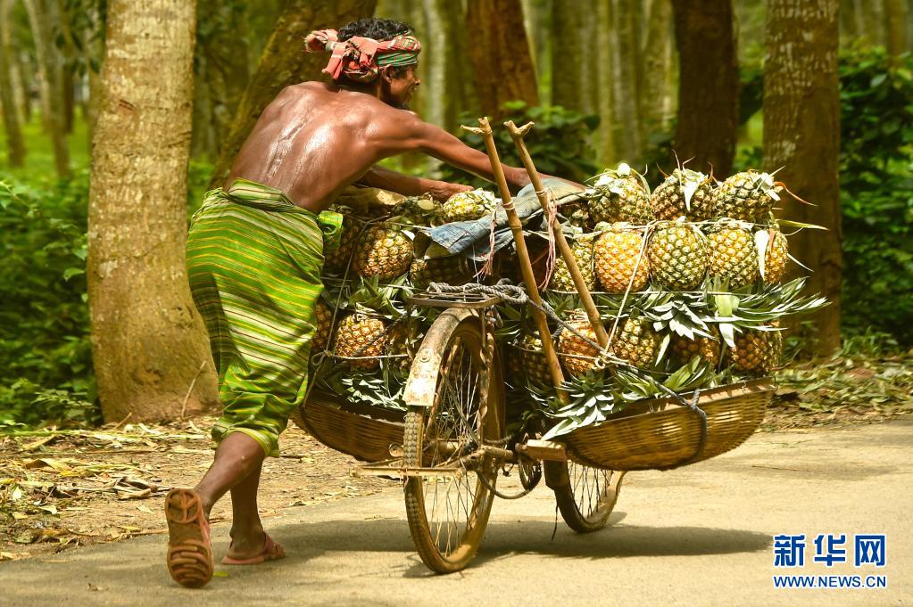 7月25日,農民在孟加拉國坦蓋爾運輸收獲的菠蘿。