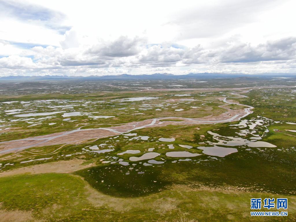 這是7月23日拍攝的長江源地區的查旦濕地(無人機照片)。