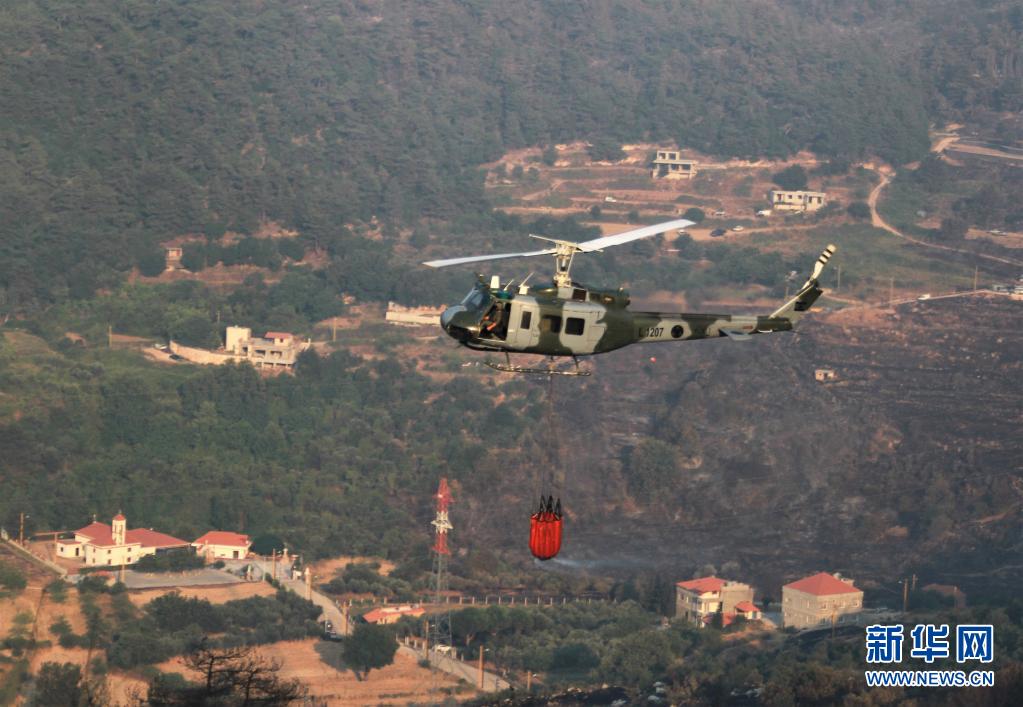 7月29日,黎巴嫩軍方直升機在阿卡爾省火災現場參與滅火行動。