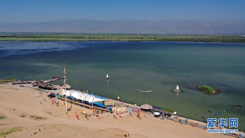 夏日時節,地處寧夏石嘴山市平羅縣的沙湖景區內,葦綠沙黃、碧波蕩漾。