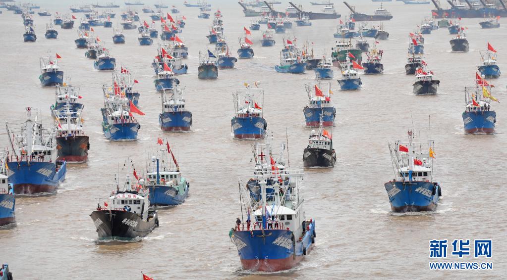 當日中午12時,浙江沿海地區的部分漁船結束伏季休漁,駛出漁港,奔赴漁場。