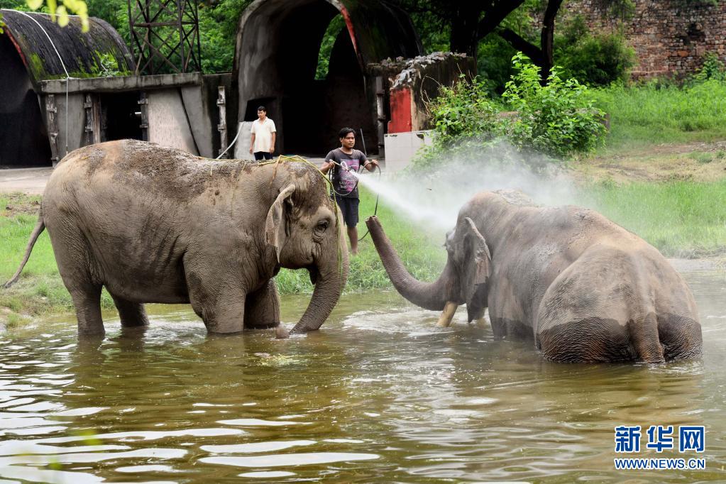 這是8月1日在印度新德里動物園拍攝的大象。