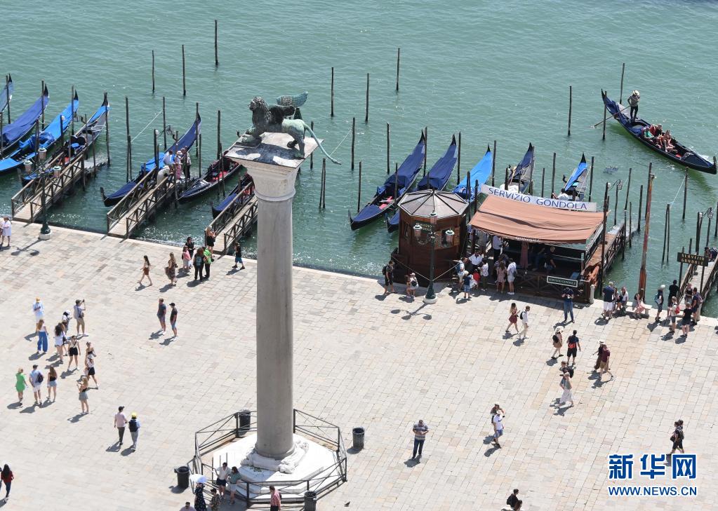 8月3日,在意大利威尼斯,“貢多拉”船停靠在岸邊。