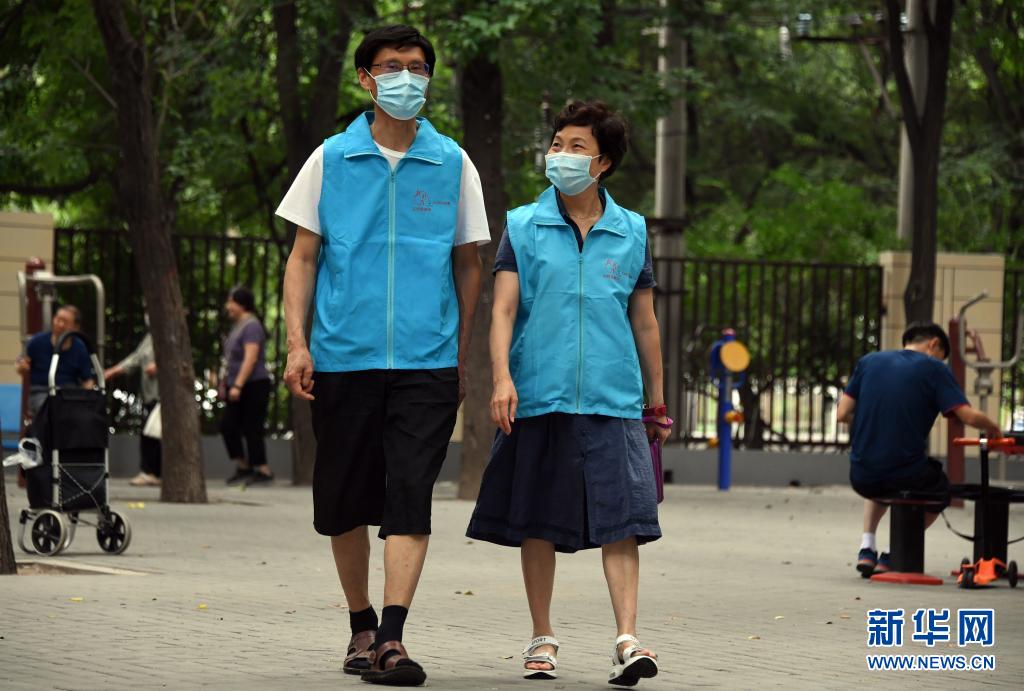8月14日,在北京市海淀區薊門里社區,馮向東與妻子董星梅準備去做志愿服務。