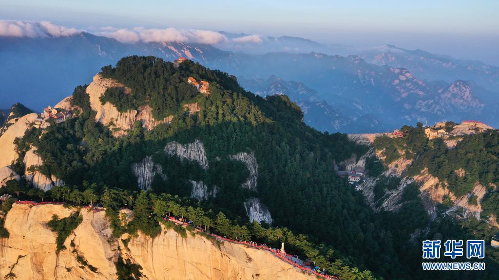 霞光映照下的華山(8月15日攝,無人機照片)。