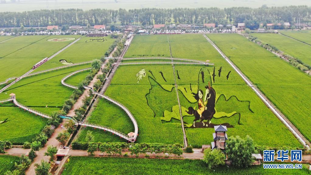 近日,遼寧省沈陽市沈北新區錫伯龍地創意農業產業園的稻田畫進入觀賞期,多種色彩的水稻組成稻田畫,吸引眾多游人前來觀光體驗。